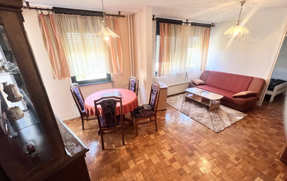 U mirnom dijelu naselja Starčevica, u Cerskoj ulici, izdaje se manji, potpuno namješten dvosoban stan smješten na trećem spratu odlično održavane zgrade sa liftom.